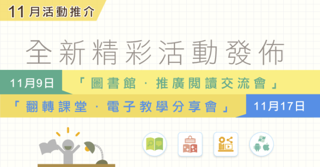 全新精彩活動發佈「圖書館.推廣閱讀交流會」,「翻轉課堂.電子教學分享會」