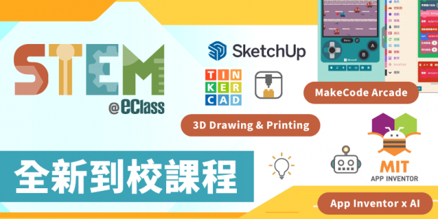 全新 STEM@eClass 到校課程:提供更多編程語言課程選擇 在這個科技急速發展的世界 STEM 的知識日新月異,除了學習 micro:bit 和 Python 編程以設計出不同的機械人、AI 、 IoT 裝置,甚至是魚菜共生裝置外,我們還有更多的 STEM 領域可供學生探索! STEM@eClass 提供一站式的校本 STEM 服務方案,包括多元化的課程、教學套件及服務內容。新學年為讓學生可接觸到更多範疇的 STEM 知識,我們革新了到校課程服務,推出全新的 MakeCode Arcade、3D Drawing & Printing、App Inventor x AI 主題的到校課程,在編程這個課題上讓學生接觸更多類型的編程語言,培養對數據的敏感觸覺及編程思維。 全新到校課程包括: MakeCode Arcade:以學生熟識的 Makecode 積木編程製作遊戲,逐一設計遊戲場境、流程、邏輯等等,通過編程把有趣的點子變成真實,讓學生由電玩玩家變成遊戲製作者。 3D Drawing & Printing :課程內容包括 3D 打印介紹、3D 繪圖工具及技巧教學、3D 打印注意事項等。學生由零開始建立自己的模型再打印出實物,流程中每個細節的教學都會包括在此課程當中。 App Inventor x AI:智能電話已經是我們日常生活用品之一,更是我們與AI最近距離的接觸。利用 app inventor 的 AI 擴展,學生可製作簡單具人工智能的電話應用程式,從而理解 AI 的運作原理及在未來生活的重要。…