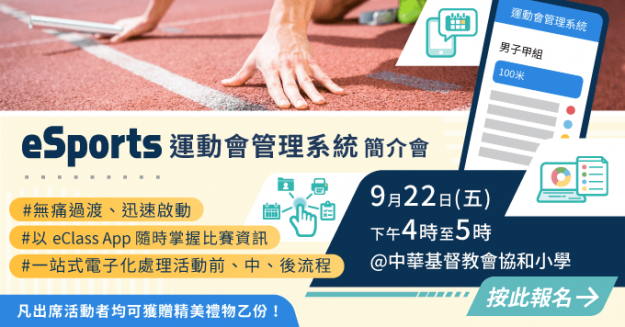 「eSports 運動會管理系統」簡介會 最新消息, 活動By eclasswww2023-08-31「eSports 運動會管理系統」簡介會 **由於報名反應熱烈,活動將移師至中華基督教會協和小學舉行,敬請留意…
